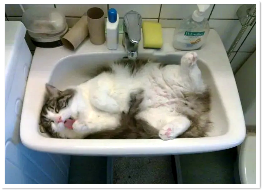 장소를 가리지 않고 잠자는 고양이와 괴로운 집사